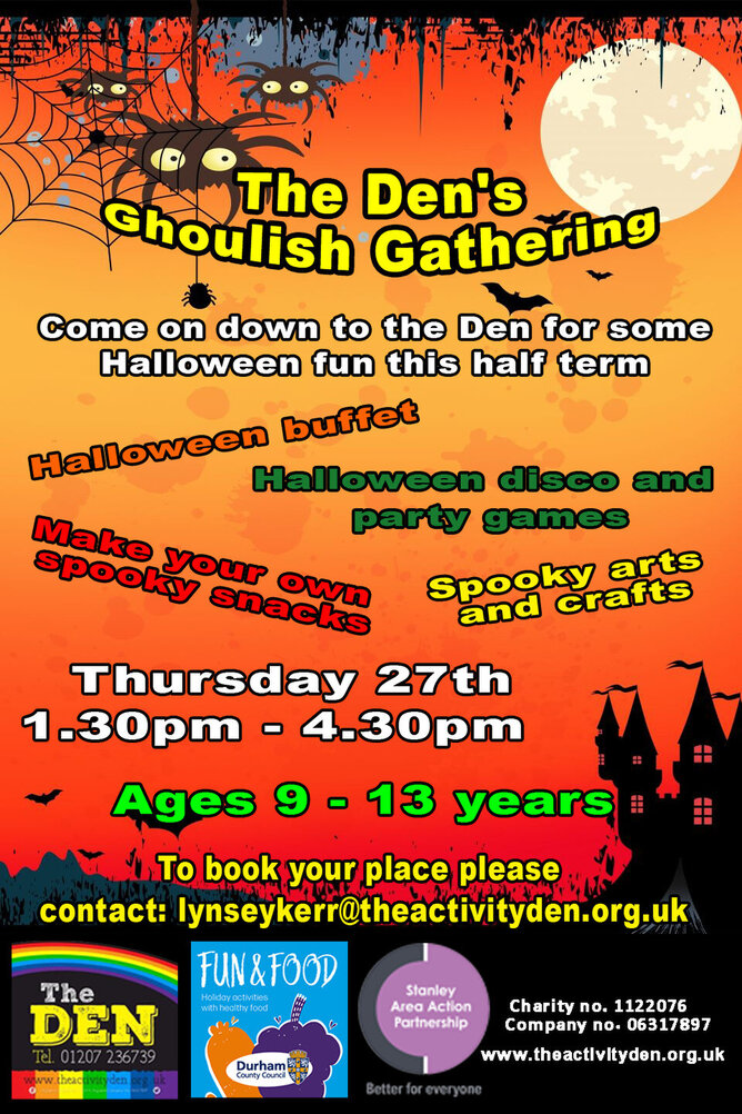 October half term is almost upon us and that means it's time for us to announce our Halloween events. We have our Spooky Spectacular for children aged 6 - 8 years, our Ghoulish Gathering for children aged 9 - 13 years old and our Family Halloween party which is suitable for all ages.