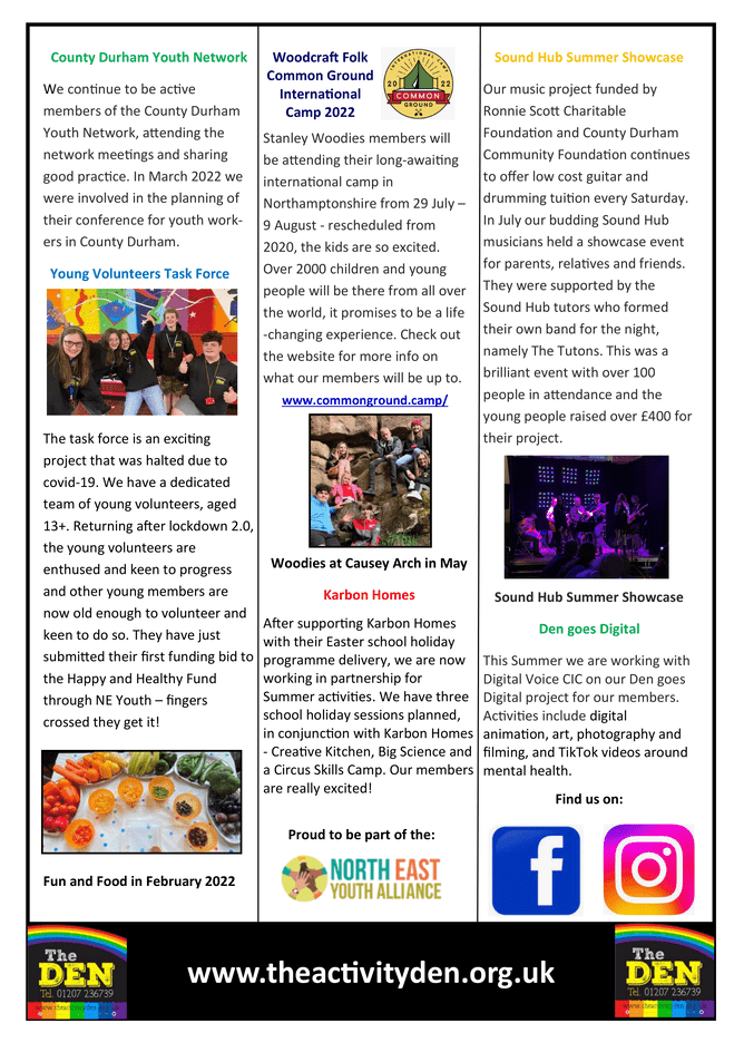 We have been working hard over the past few months and we wanted to share some of our highlights with our Den friends as well as some of our exciting upcoming projects. We would really appreciate it if you would give our update a read and share it far and wide. The download link is below. All information can be found on the pictures placed below.