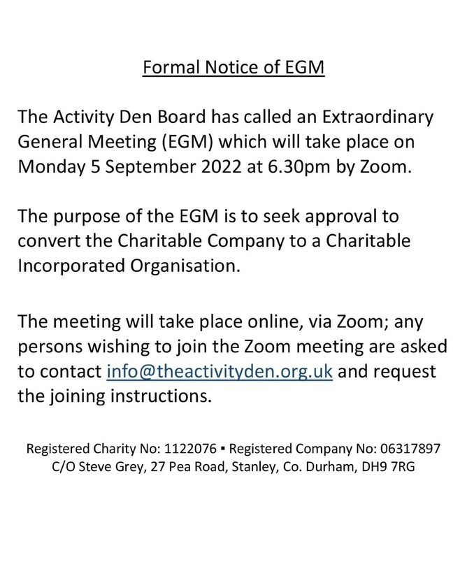Charitable Incorporated Organisation (CIO) No: 1122076The Activity Den Privacy policy